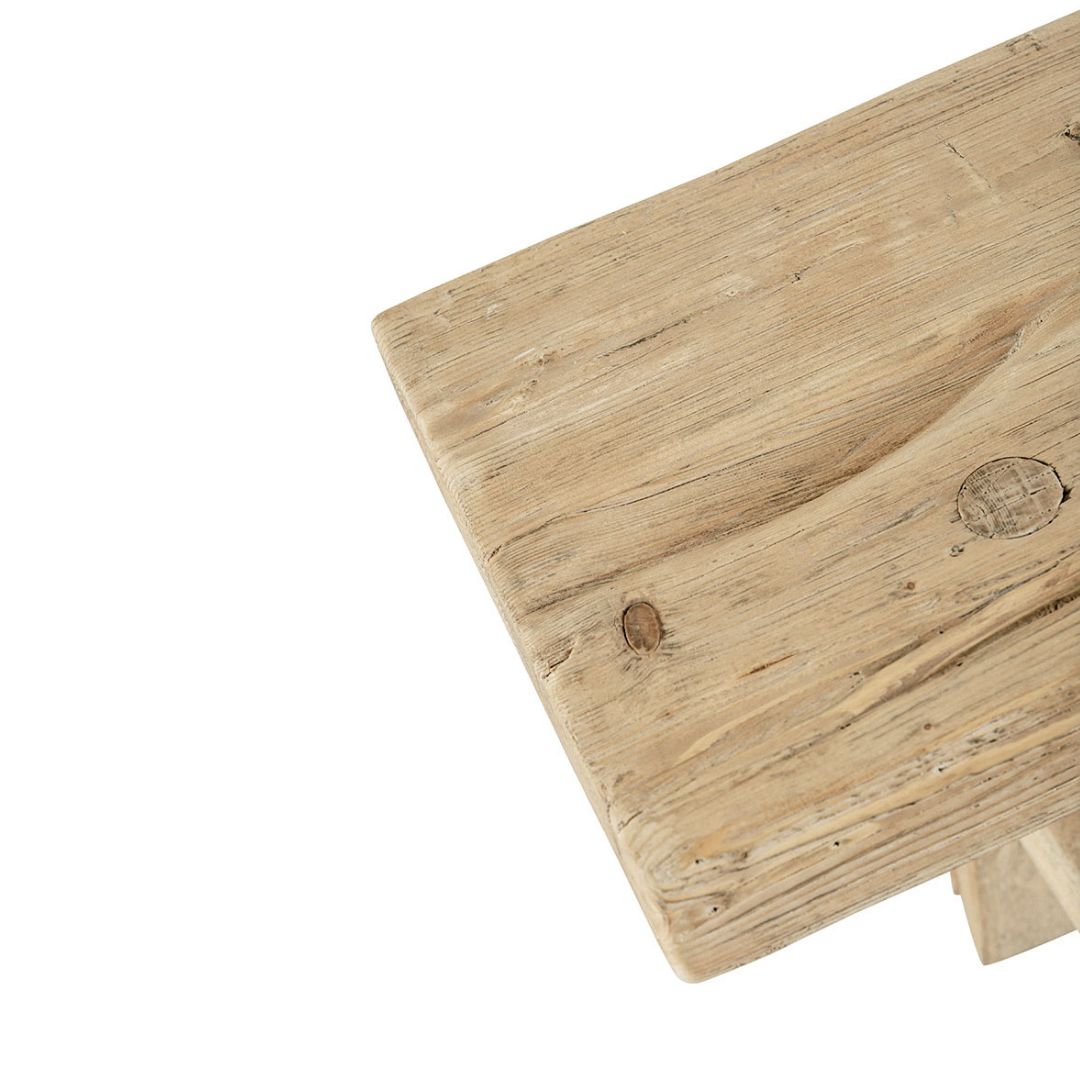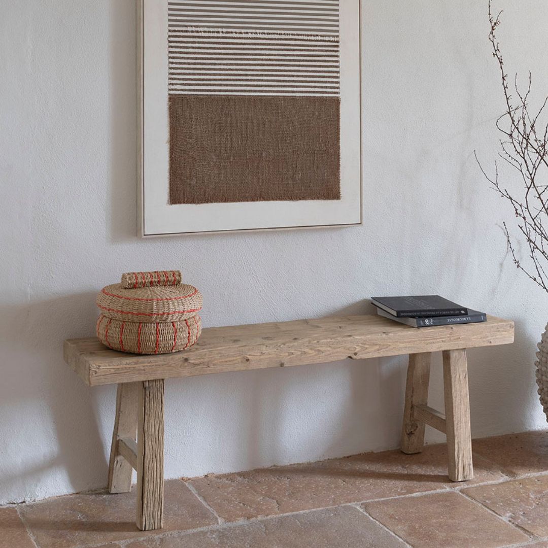 Fabricado en olmo natural reciclado, este banco rinde homenaje a la artesanía tradicional, respetando las irregularidades propias de la madera y transformándolas en un valor estético. Su estructura sólida y estable lo convierte en una pieza tan práctica como decorativa, perfecta para acompañar una mesa de comedor, completar una entrada o aportar un punto de apoyo extra en el salón.