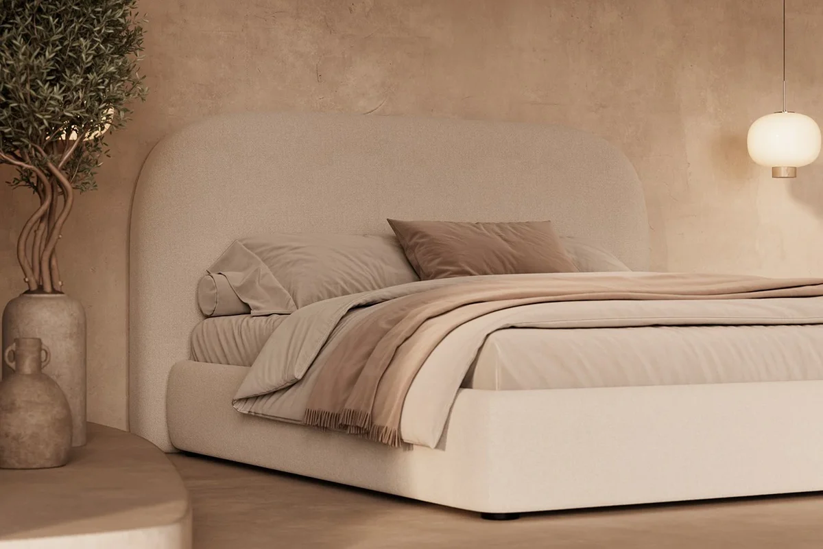 Combinada con mesitas minimalistas, lámparas de luz cálida y textiles naturales, esta cama se convierte en el elemento protagonista del dormitorio, creando un ambiente acogedor y equilibrado.