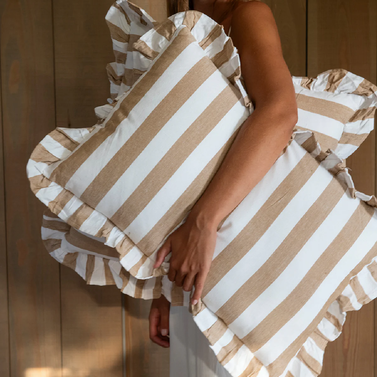 Diseño: rayas beige con volantes decorativos
