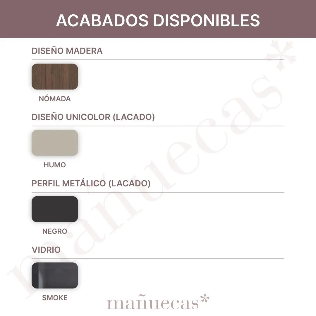 | Acabados Disponibles | HUMO, NOMADA, PERFIL NEGRO, VIDRIO SMOKE |