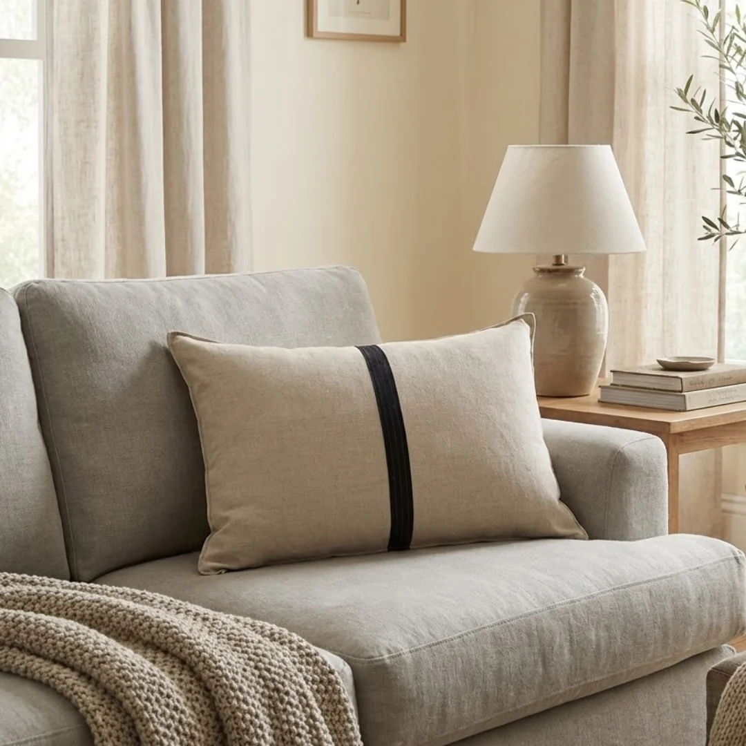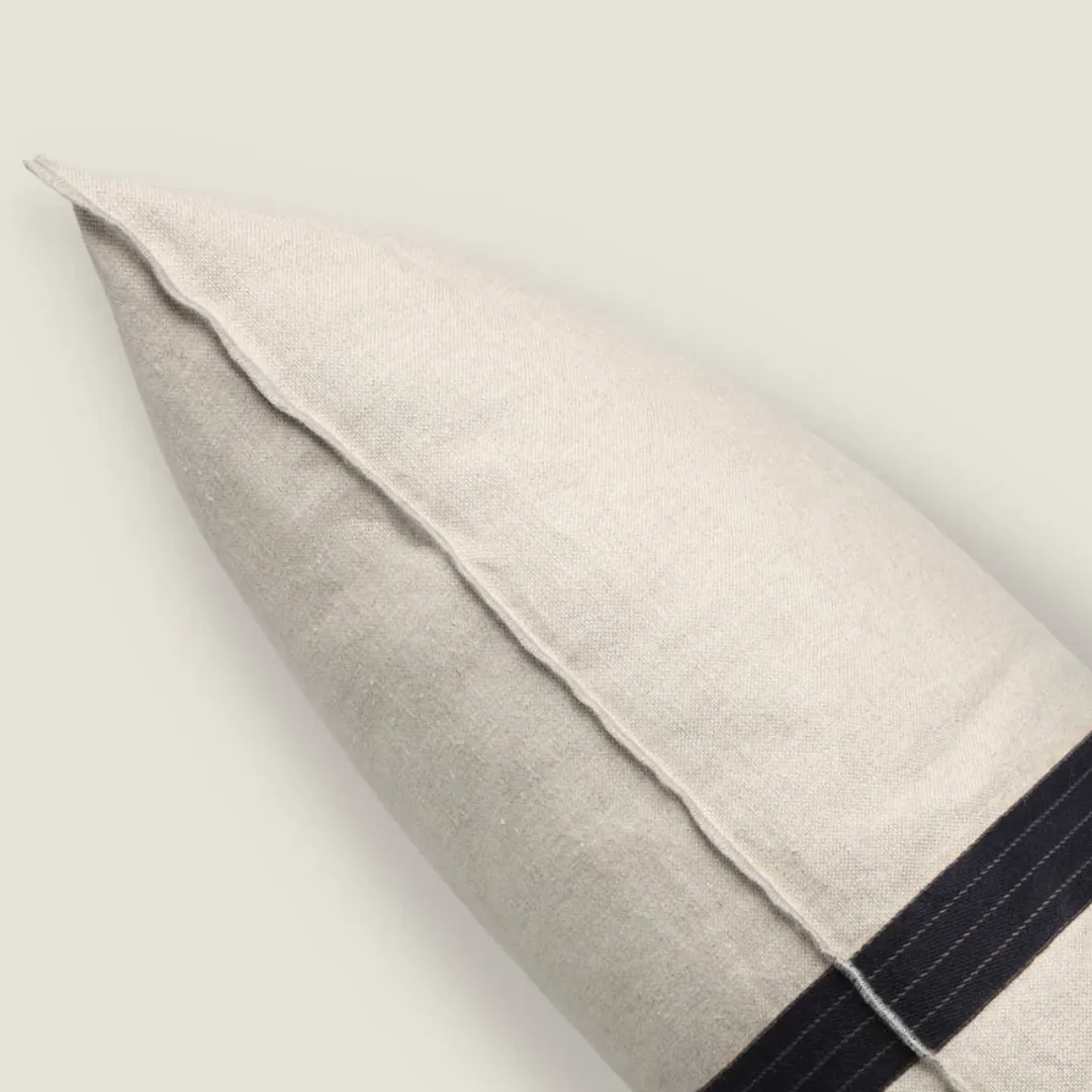 El Cushion Pure de Color Natural de Güell Lamadrid es un almohadón de líneas sobrias y depuradas, perfecto para quienes buscan una decoración serena y minimalista en el dormitorio. Su diseño se centra en la belleza de los materiales y los detalles: un lino natural delicadamente adornado con un galón central de rayas, que aporta un toque discreto de textura y movimiento.