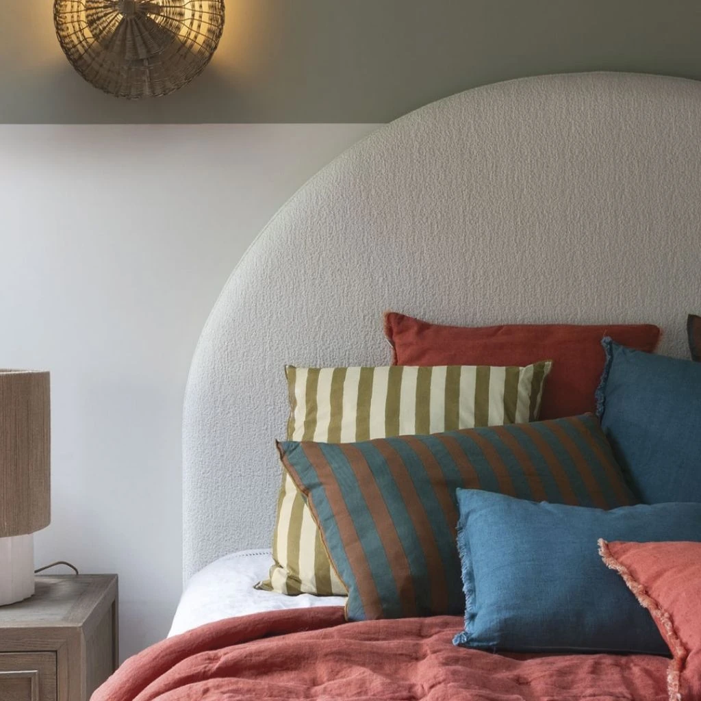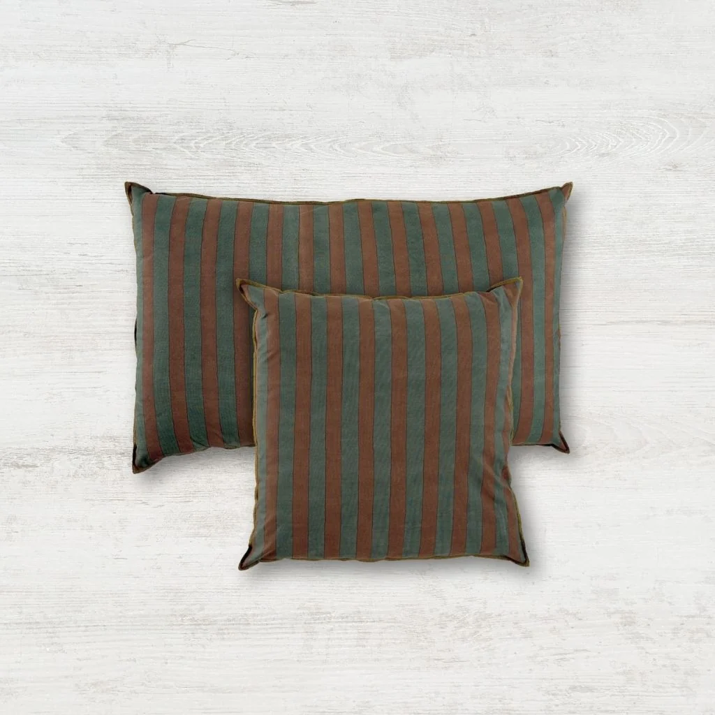 Encuentra la Funda de Cojín BAYADÈRE Azul Petróleo y Terracota de Blanc D’Ivoire en Mañuecas, tu tienda de muebles y decoración en Arganda del Rey. Dale a tu hogar un aire artesanal y sofisticado con este complemento textil único.