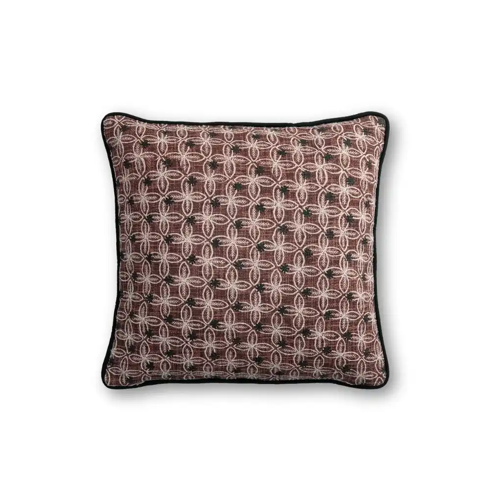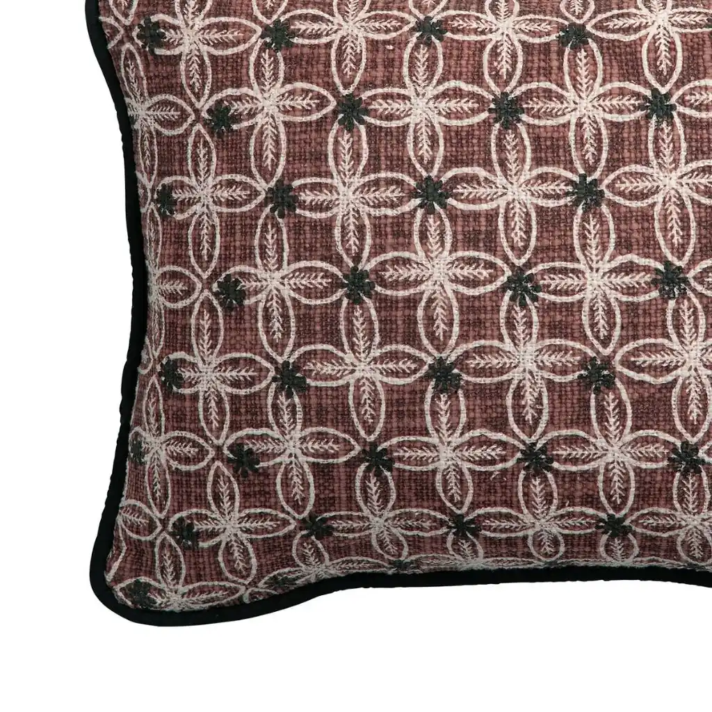 Encuentra la Funda de Cojín Chandra Rosa con Borde Negro de Blanc D’Ivoire en Mañuecas, tu tienda de muebles y decoración en Arganda del Rey. Una pieza textil con la que añadirás personalidad y elegancia a tu hogar.