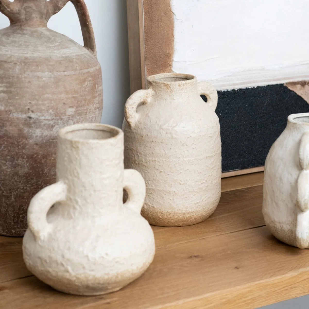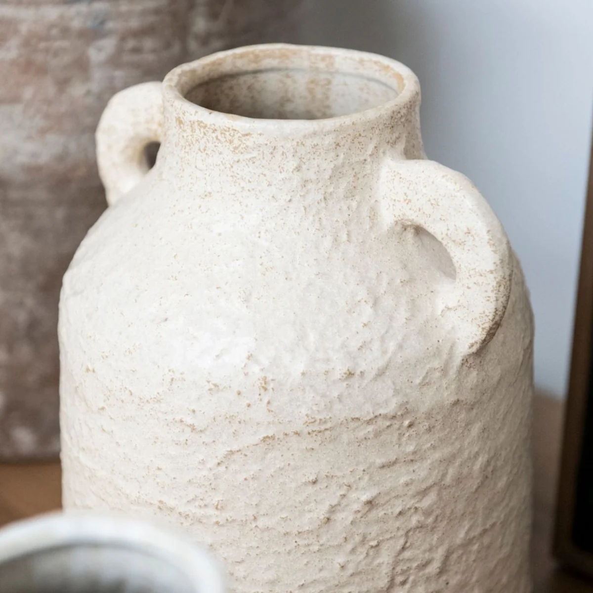 El Jarrón Sicily Beige de Andrea House combina la autenticidad del diseño rústico con la delicadeza de un acabado artesanal. Fabricado en cerámica beige con dos asas laterales y una textura irregular, esta pieza aporta un toque natural, cálido y elegante a cualquier ambiente.