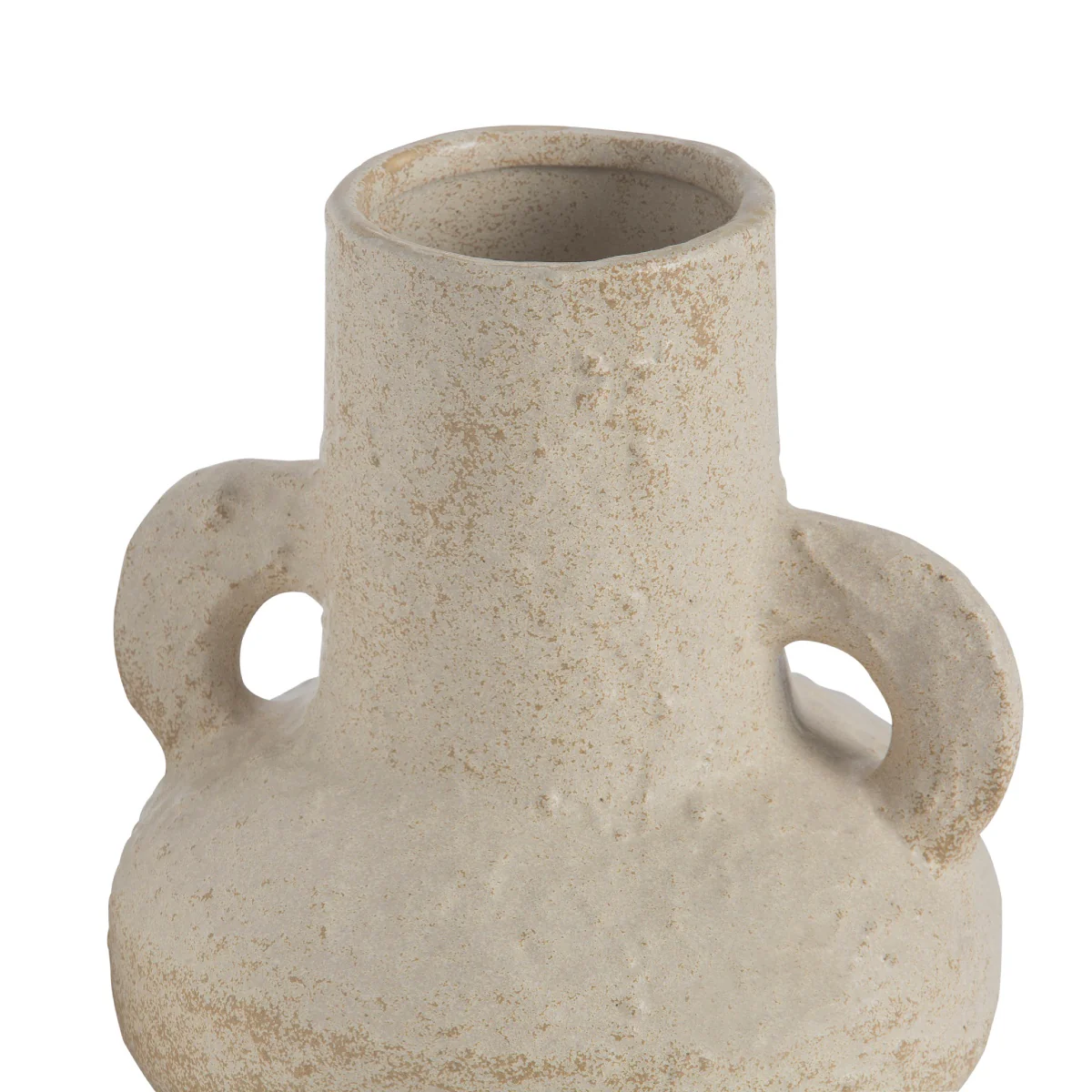 El Jarrón Decorativo de Cerámica Sicily de Andrea House está fabricado en cerámica beige con textura rugosa y asas laterales.
