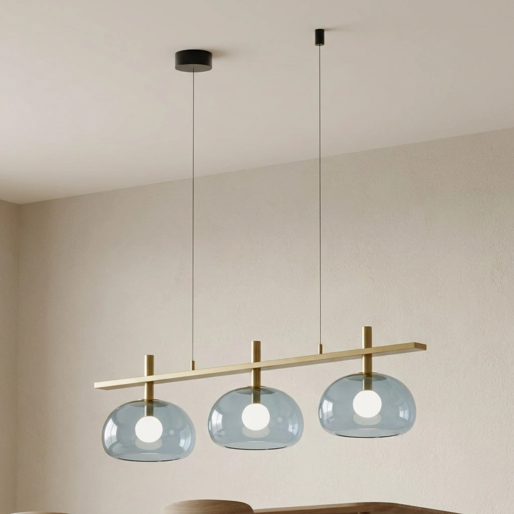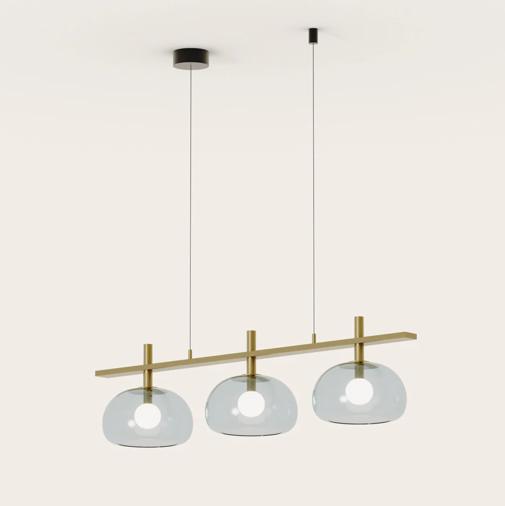 La Cloud COLGANTE GRANDE es perfecta sobre mesas de comedor amplias o en espacios de doble altura donde se busque una luminaria con impacto visual sin resultar pesada. En acabado oro envejecido con tulipa ámbar, aporta calidez y un toque vintage refinado; en negro mate con vidrio gris o transparente, refuerza ambientes modernos y minimalistas.