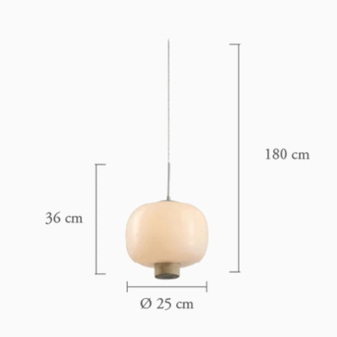 Lámpara colgante de vidrio y travertino (36 cm) con cable ajustable de 200 cm. Luz cálida y diseño atemporal para interiores elegantes.