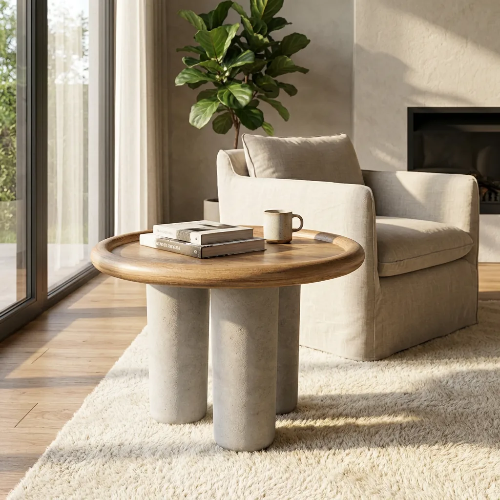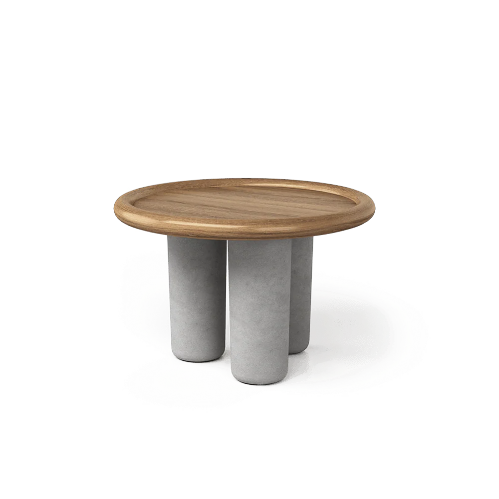 La mesa auxiliar Loira de Unika Living destaca por un diseño depurado que combina materiales nobles y una estética calmada, perfecta para interiores contemporáneos. Sus patas de microcemento, de carácter arquitectónico, aportan solidez visual sin perder ligereza, mientras que la tapa de roble natural realza la calidez y autenticidad de la madera.