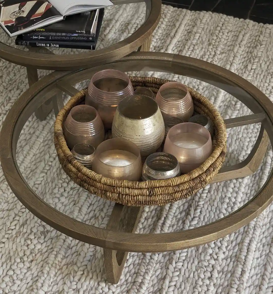 Encuentra una selección de mesas de centro y auxiliares fabricadas con materiales naturales y diseño exclusivo para crear salones cálidos y sofisticados.