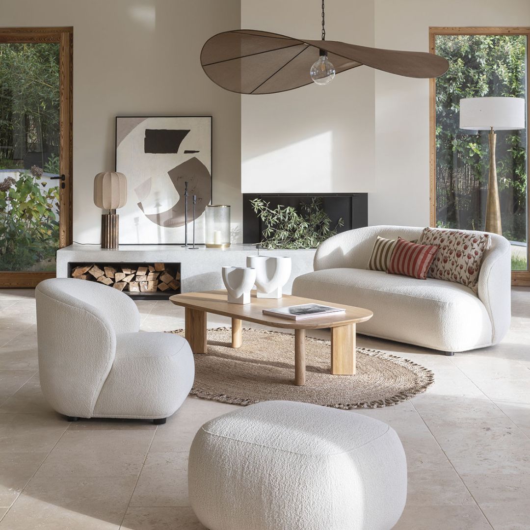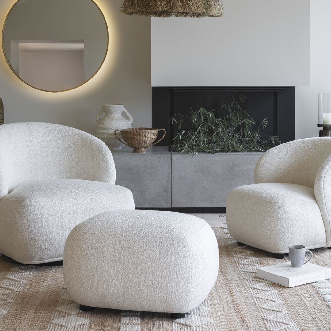 Descubre el Puf LISETTE de tejido bouclé – Crema de Blanc D’Ivoire en Mañuecas, tu tienda de muebles y decoración en Arganda del Rey.