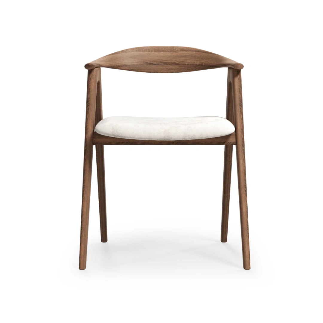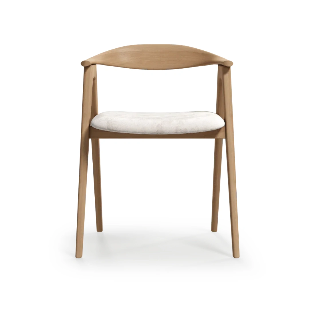 La estructura de madera aporta una presencia elegante y atemporal, mientras que el tapizado Eos Creme añade una nota de calidez visual que se integra con facilidad en distintos estilos decorativos. Gracias a sus proporciones equilibradas: 55 cm de ancho, 57 cm de fondo y 76 cm de altura. La silla Lyra favorece una postura relajada y ergonómica, pensada para el uso diario en interiores.