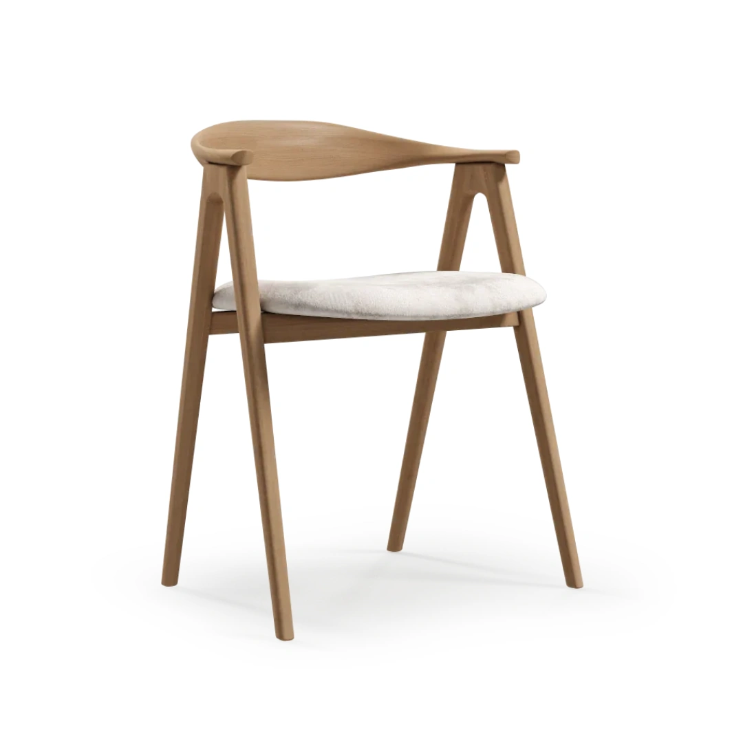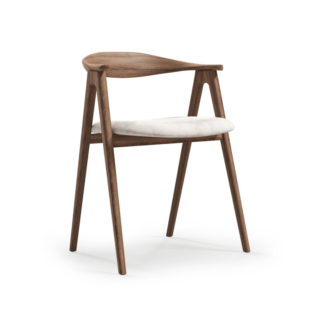 Disponible en madera de fresno natural o madera de nogal, esta silla combina diseño, confort y calidad artesanal, convirtiéndose en un elemento funcional con carácter propio.