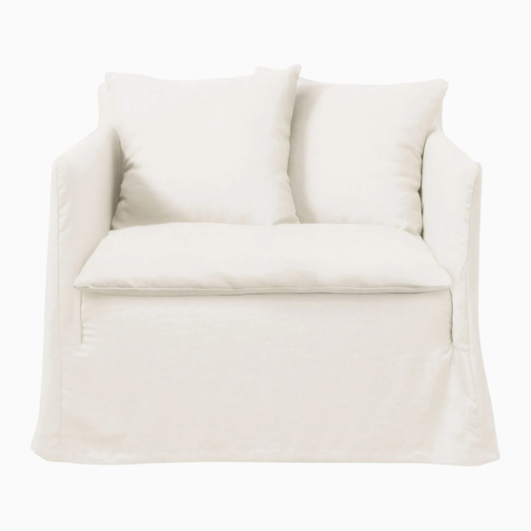 Sillón Gabriel de Blanc d’Ivoire: elegancia refinada, confort envolvente y lino natural